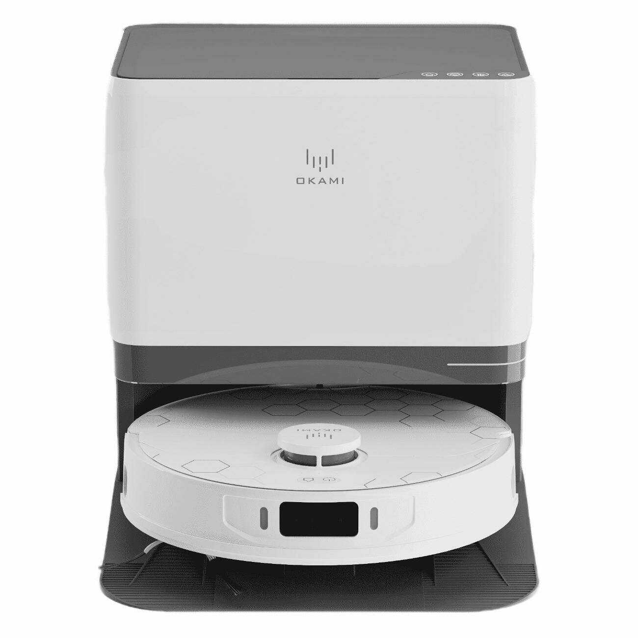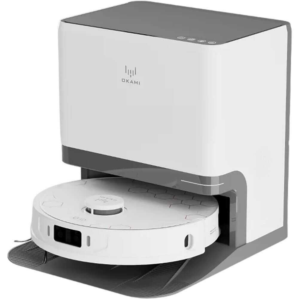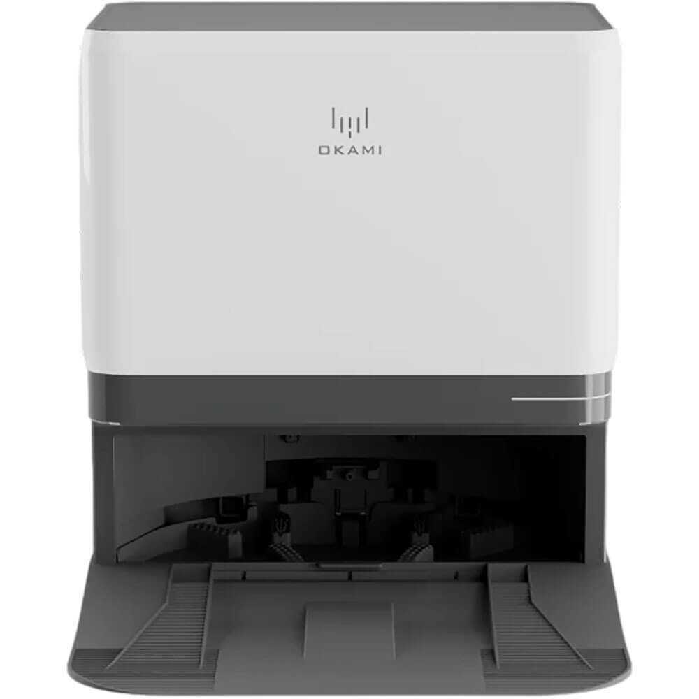 Станция самоочистки Okami R135 автоматически опустошает пылесборник, моет и сушит мопы, меняя воду. Пользователи хвалят отсутствие ручной возни с грязью, что экономит время. Процесс включает вытряхивание мусора и промывку деталей, оставляя робота готовым к следующей уборке. Однако станция шумит во время очистки, что заметно. Это ключевое преимущество для полной автоматизации. -