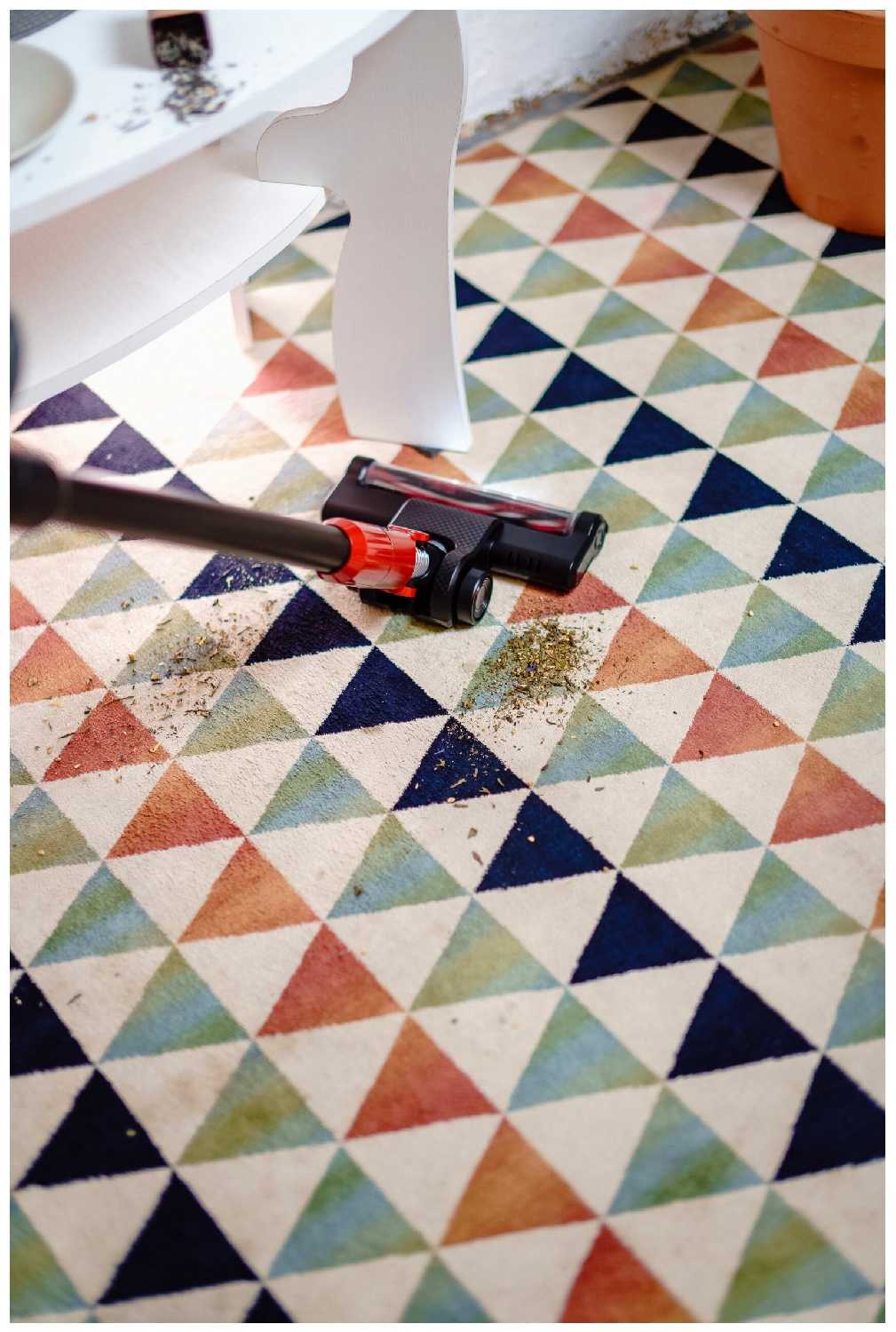 - Щелевая насадка и угловая щетка обеспечивают доступ в труднодоступные места (под батареи, за шкафы).