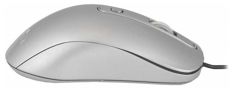 - + Белый и серый цвет, выглядит стильно. Четыре режима DPI: 800, 1200, 1600, 2400. Прорезиненные вставки, не скользит в руке. Полноразмерная, рука нормально лежит. Провод 1,6 метра, достаточно длинный.