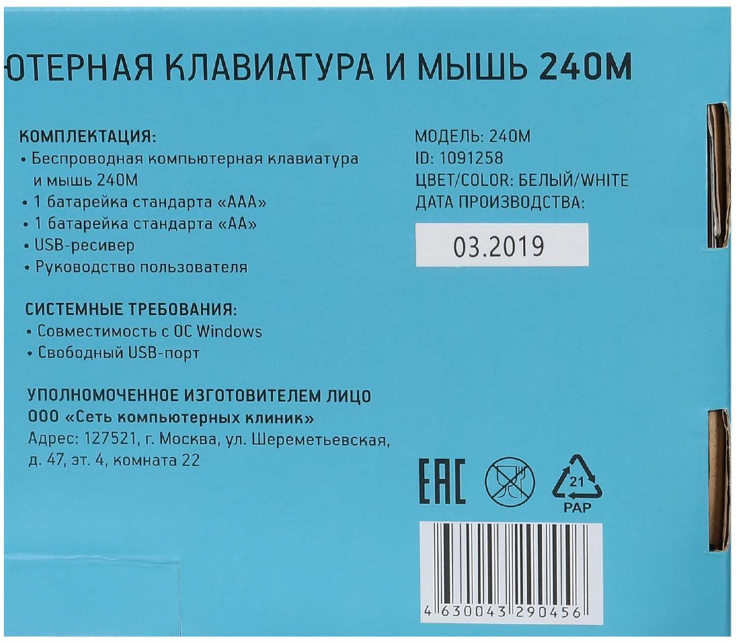 Отзывы о Мышь/Клавиатура Oklick 240M