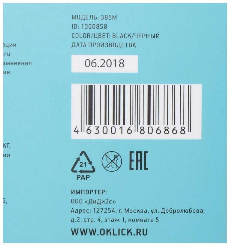 Отзывы о Мышь OKLICK 385M