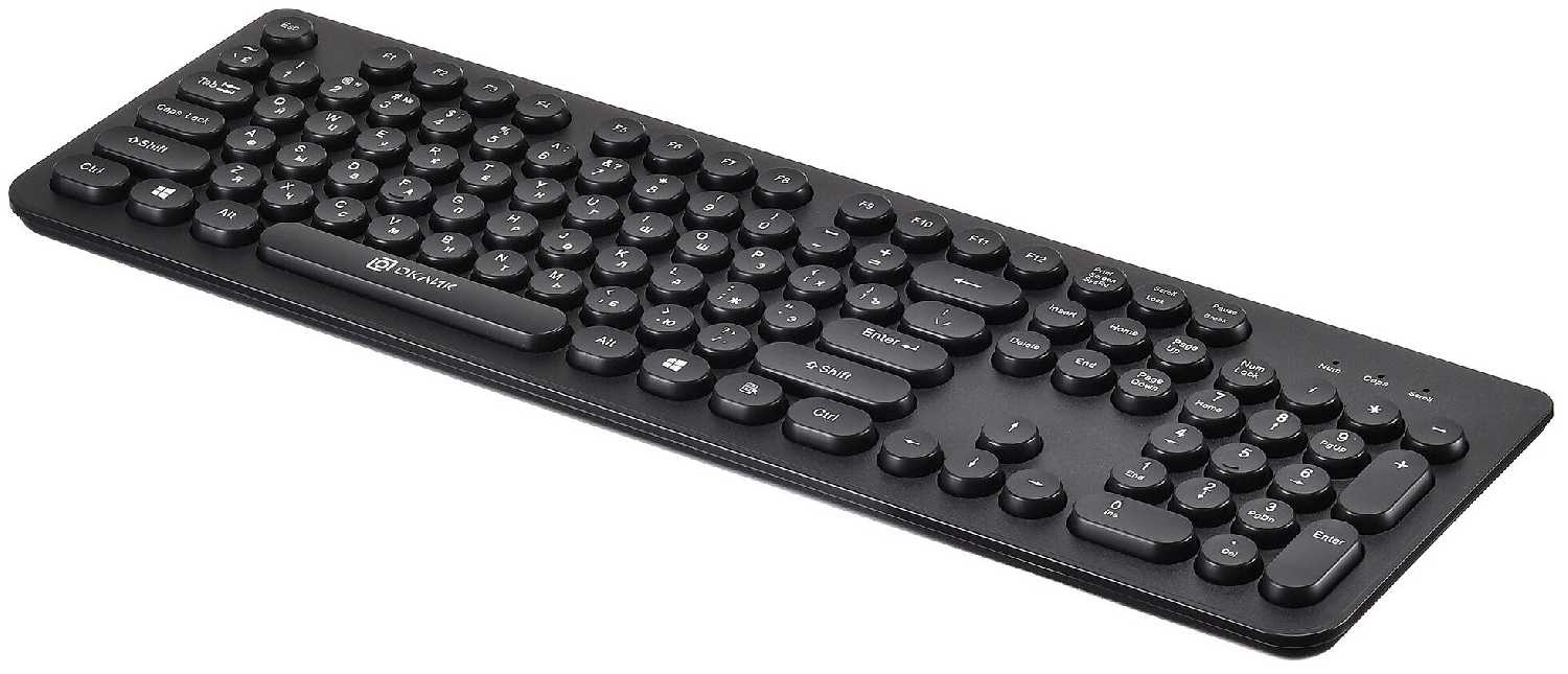 - + Кнопки круглые, интересно смотрятся,первый раз такую встретил, поначалу было не удобно сейчас привык, мне нравится, тонкая да и в целом не на пол стола, приятный звук при нажатии клавиш, не бринчит как печатная машинка.