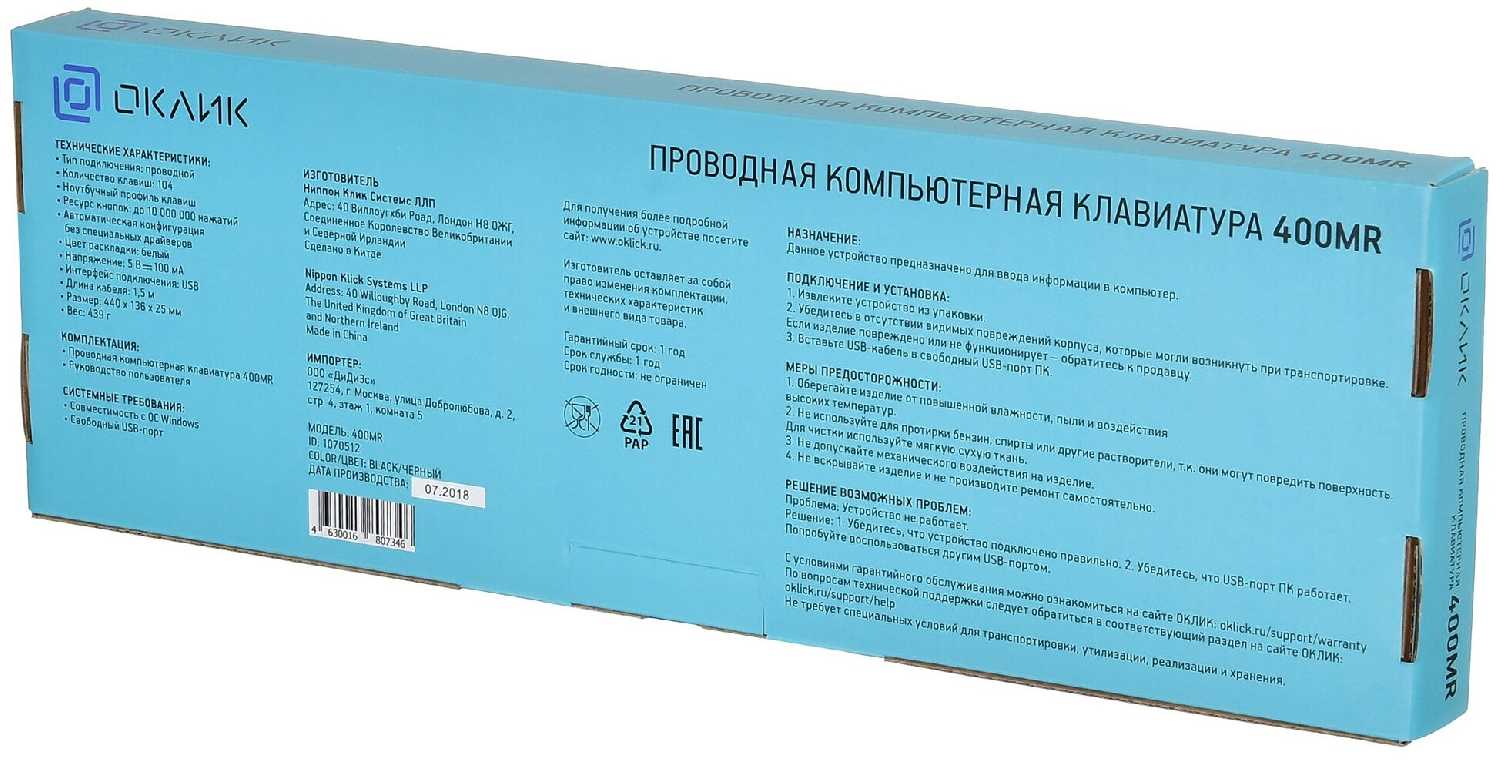 Отзывы о Клавиатура Oklick 400MR Black USB