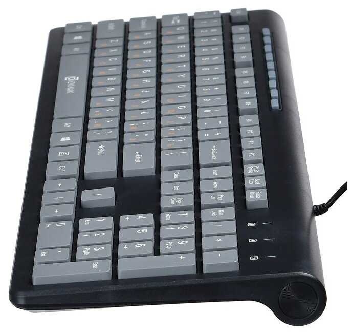 - + Дизайн, размер стандартный, клавиши на своём месте, угол наклона можно регулировать, дополнительно для удобства предусмотрены мультимедийные кнопки