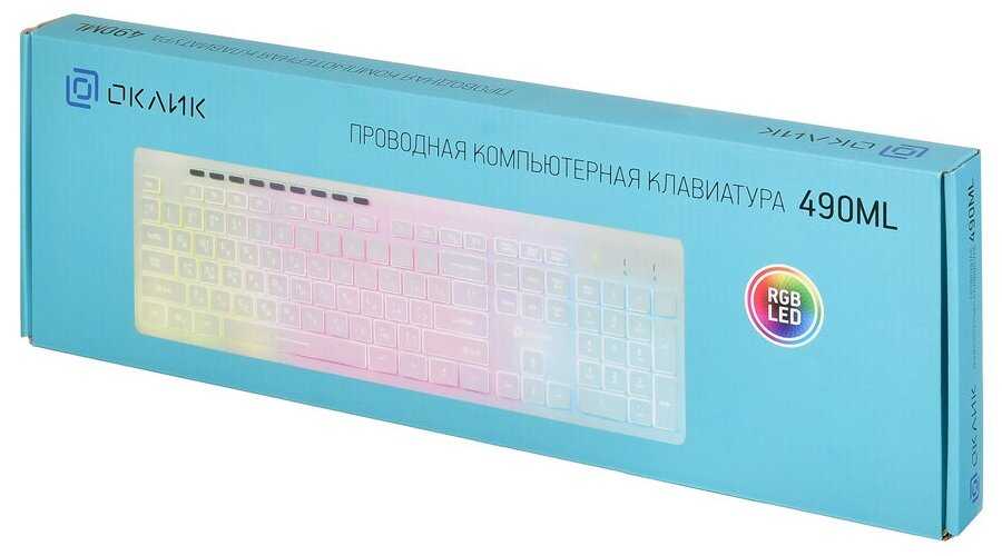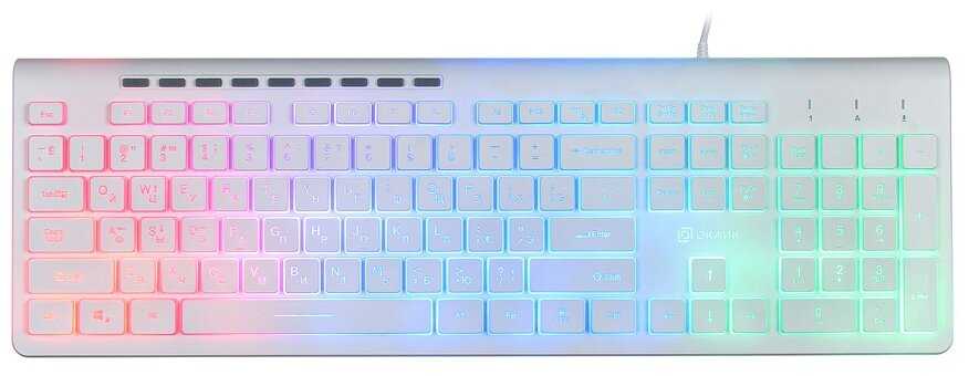 - Полноразмерная раскладка с индикаторами Num/Caps/Scroll Lock: