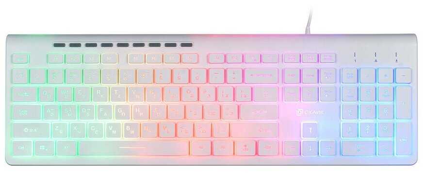 - Подсветка равномерно освещает символы благодаря полупрозрачному пластику клавиш.