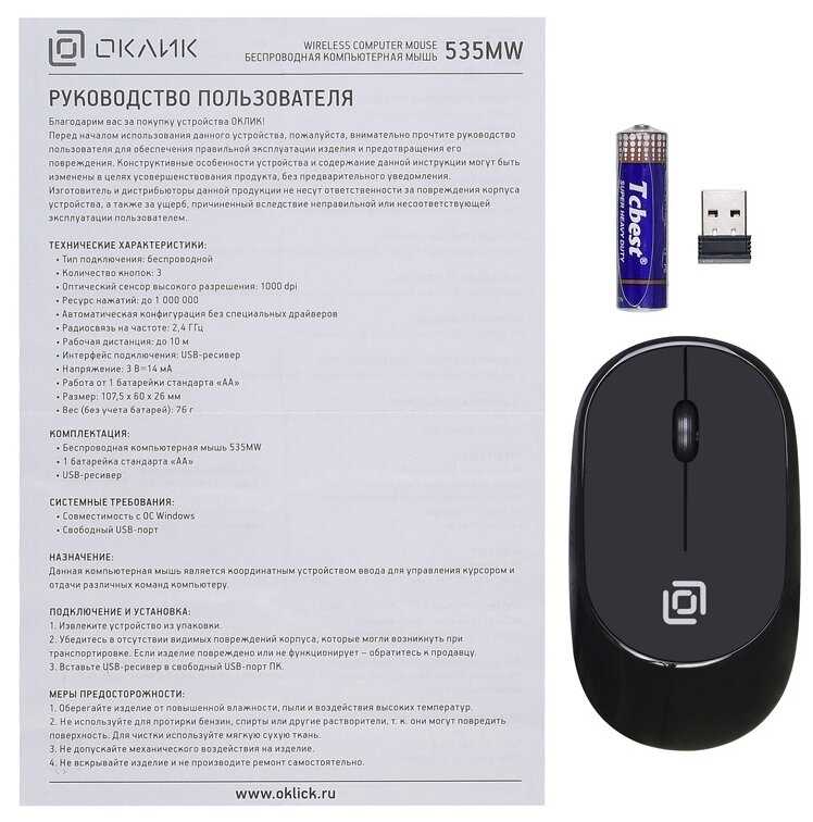 - + Миниатюрность, беспроводная, универсальная для правши и левши, 1000 dpi чувствительность.