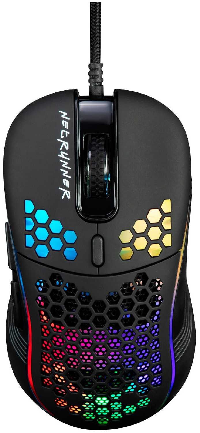 Зацепил внешний вид, netrunner это топ, нестандартный, новый, с многоцветной подсветкой. В реальности выглядит лучше, чем на фото. В остальном привычная мышка, чувствительность 3200, в целом хватает на все задачи, провод длинный 1,5 м, рука лежит комфортно. Подсветка не выключается, нет кнопки, при выключении компа продолжает гореть, но я не парюсь.