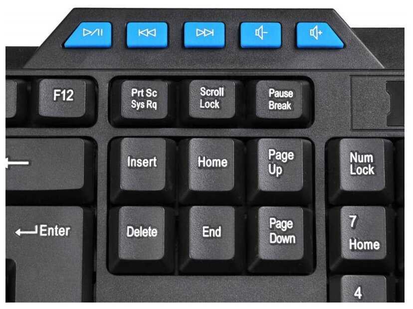 - + Клавиши нажимаются легко, мягко, без стука, почти бесшумно. Симпатичный дизайн, приятный синий цвет не выглядит слишком ярко на фоне черного. Обозначения на клавиши нанесены четко. Маленькие дополнительные синие кнопки вверху резиновые и весьма полезные: отключение и регулировка звука, вызов калькулятора, «Мой компьютер», новая вкладка в браузере, почта, кнопки для просмотра видео . На светодиодах, свидетельствующие о нажатии клавиш Num Lock, Caps Lock и Scroll (правый верхний угол клавиатуры) была защитная пленочка.