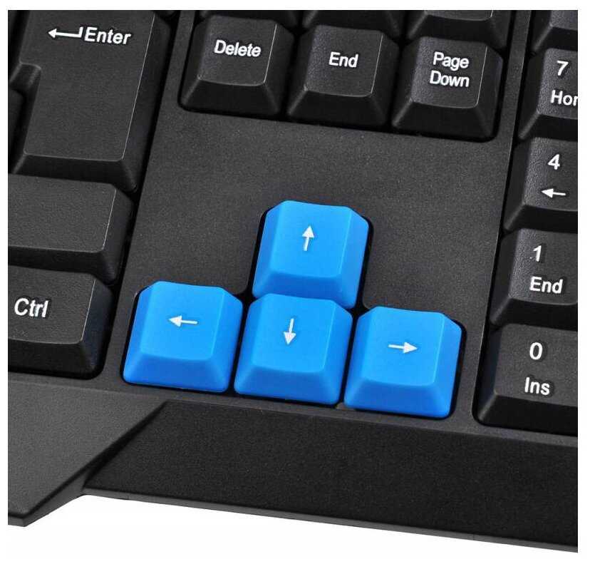 Выделенные синим цветом WASD и стрелки визуально помогают ориентироваться в темноте, но не имеют тактильных отличий. При слабом освещении (например, от монитора) контраст достаточен, но стертые символы нивелируют это преимущество. Некоторых пользователей яркий цвет "режет глаза" при длительном использовании. -