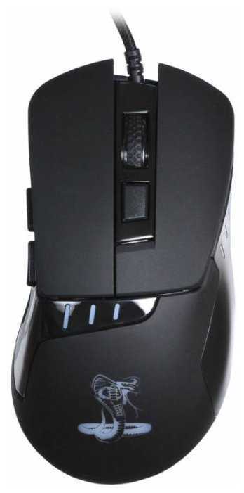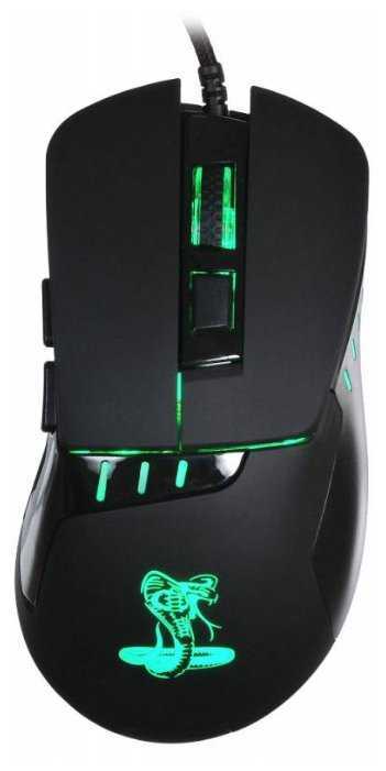 Удобно лежит в руке, по коврику скользит плавно, тактильно приятные отклики клавиш и колёсика, 4 степени чувствительности, приятная подсветка, особенно нравится логотип кобры, который меняет свой цвет, шнур в матерчатой оплётке с фильтром, внешне собрана качественно, небольшая цена, работает из коробки, причём работает без замечаний.