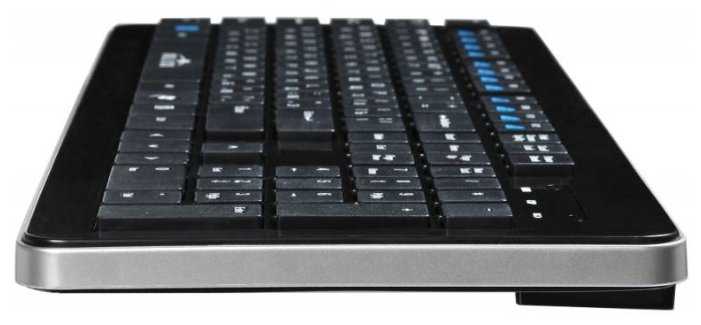 - - Теряет связь с ПК, если рядом есть ещё блютуз устройства. Громкая. Западают клавиши. Светодиоды над цифровым блоком не видны от слова совсем. Не правильное расположение кнопок Fn и Win.