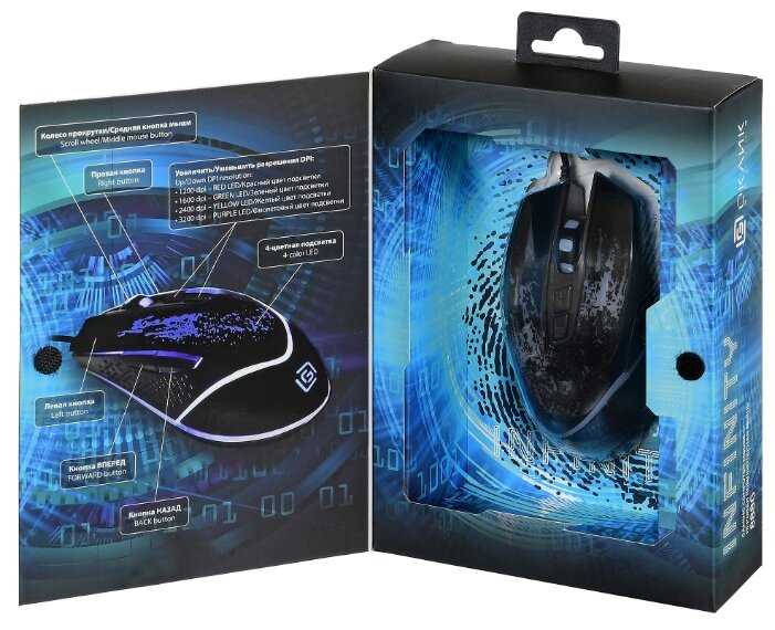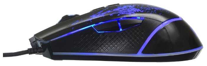 - + Мышь проводная – красивая и удобная игровая модель с шестью кнопками. RGB-подсветка особенно эффектно смотрится на черном корпусе, превращая простое устройство в яркий элемент декора.
