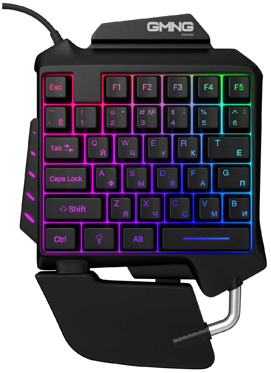 - + Яркая красивая подсветка, круто дополняет. Удобный легкий корпус, большие клавиши. Дублируется русская раскладка.