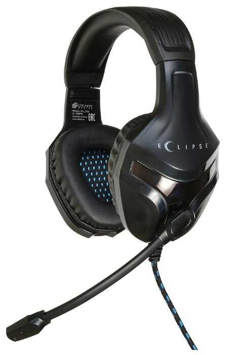 - + Игровая гарнитура OKLICK Eclipse HS-L370G в черном стильном корпусе. Выглядят очень неплохо регулировка по высоте есть, микрофон тоже регулируется, звук неплохой.