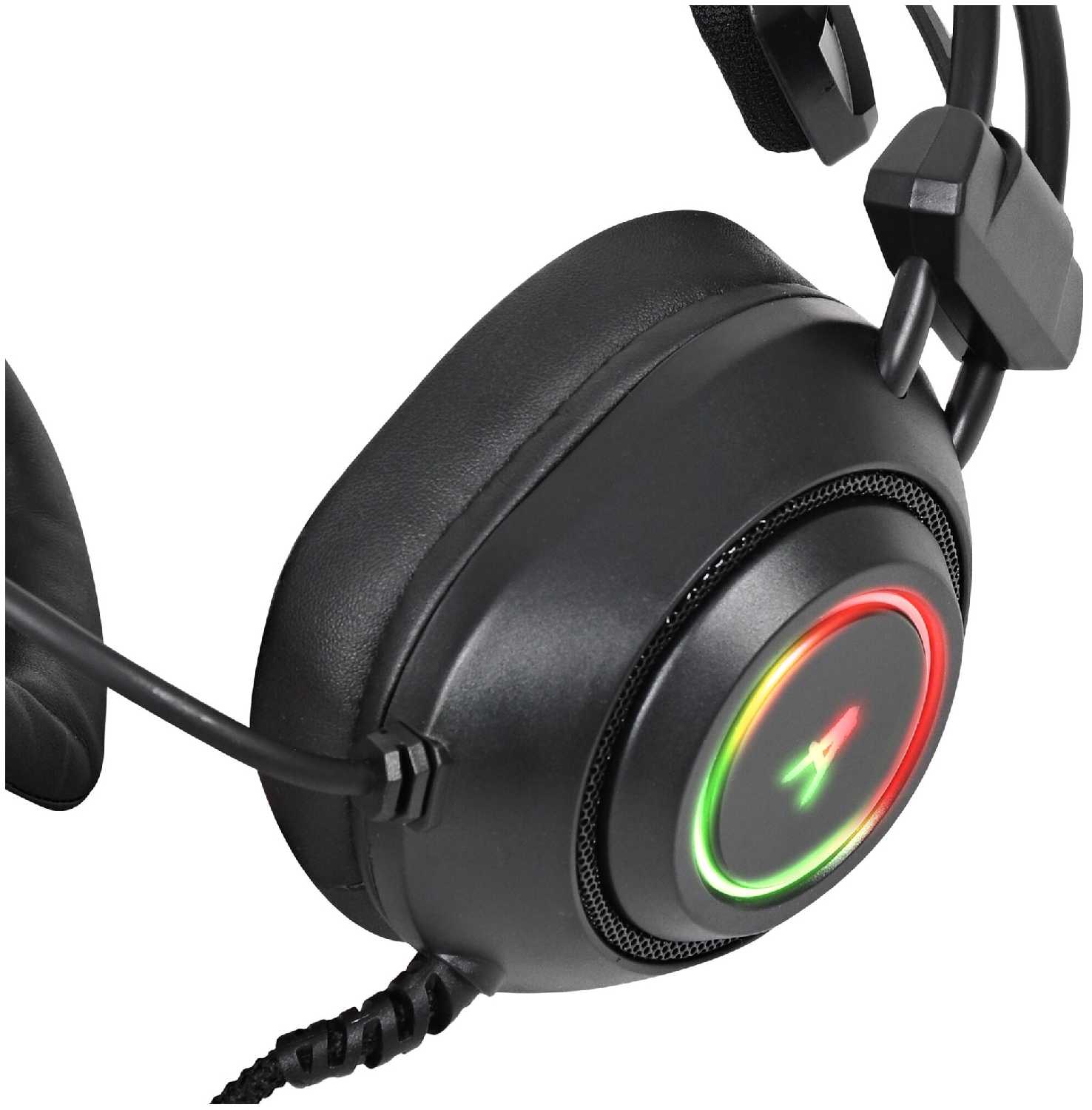 - Светодиодная лента вокруг амбушюр и микрофона с возможностью полного отключения.