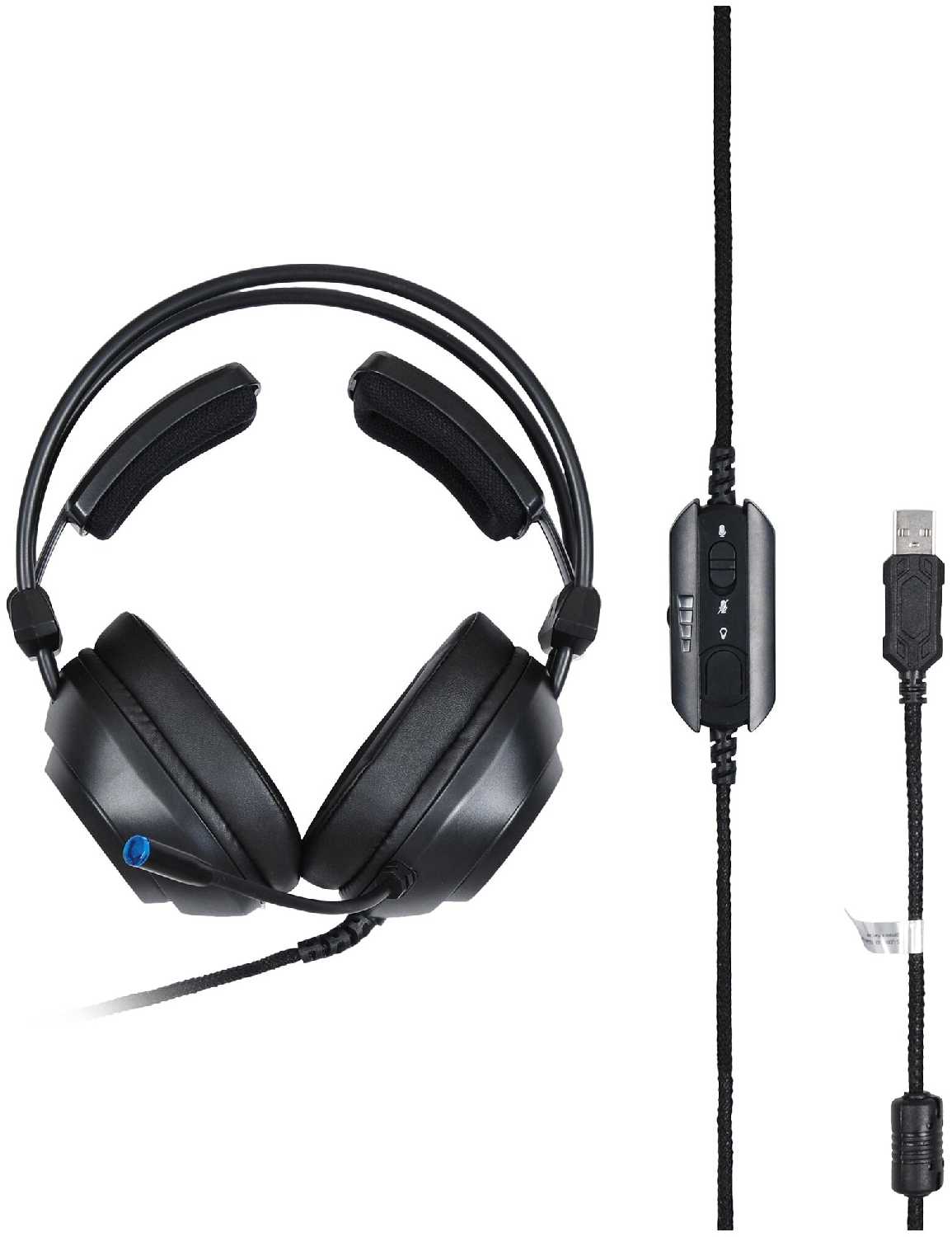 - + Управление микрофоном и звуком на шнуре кабеля подключения. Подсветка. Длинный кабель с usb расширением. Чувствительность динамика 110 Дб, хорошее значение для недорогих наушников. Приятный ценник, я еще и купил по хорошей скидке.