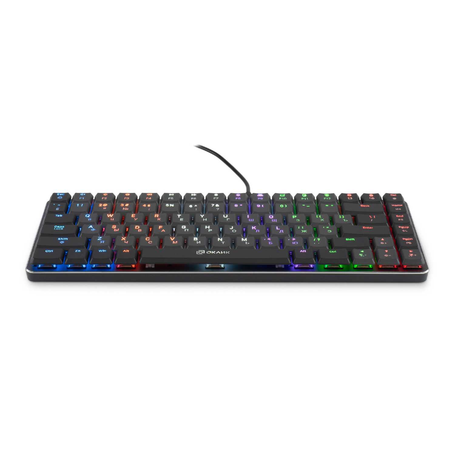 - + Недорогая компактная механика, длины сетевого кабеля хватило с запасом, приятная подсветка клавиш, нормальная маркировка, мягкий ход