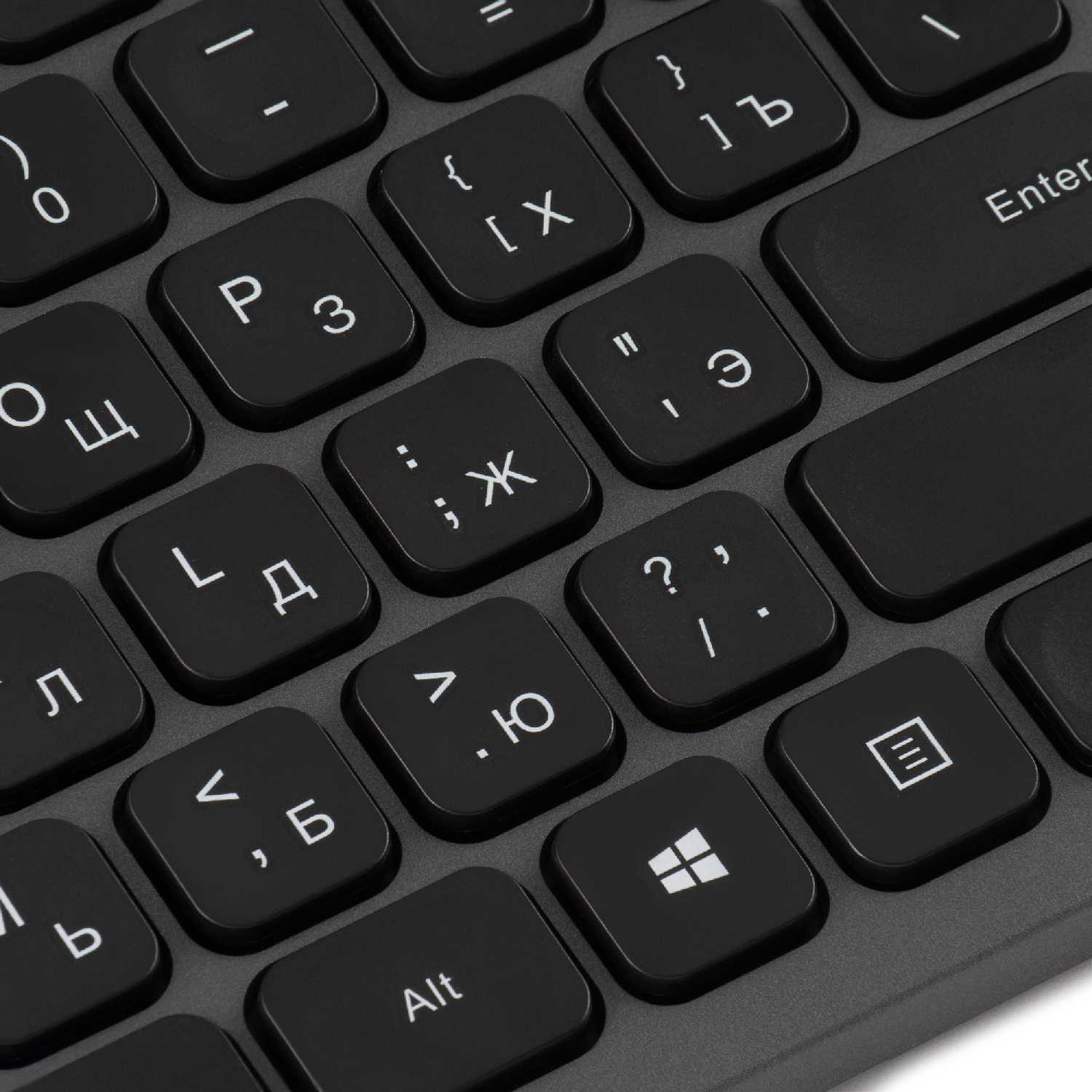 - + Плоский дизайн, низкий профиль клавиш с четким срабатыванием.
