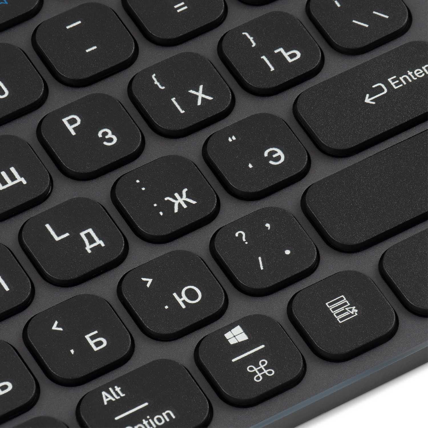 - + Стандартная раскладка, которая подойдет тем, кто привык к классическим клавиатурам. Плюс, кнопки легко нажимаются, но при этом чувствуют себя «собранными», без люфта, так что работа с ней будет комфортной и надежной.