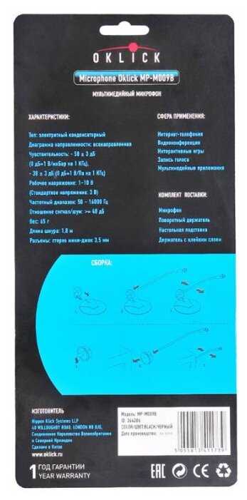 Характеристи Oklick MP-M009, разъем: mini jack 3.5 mm