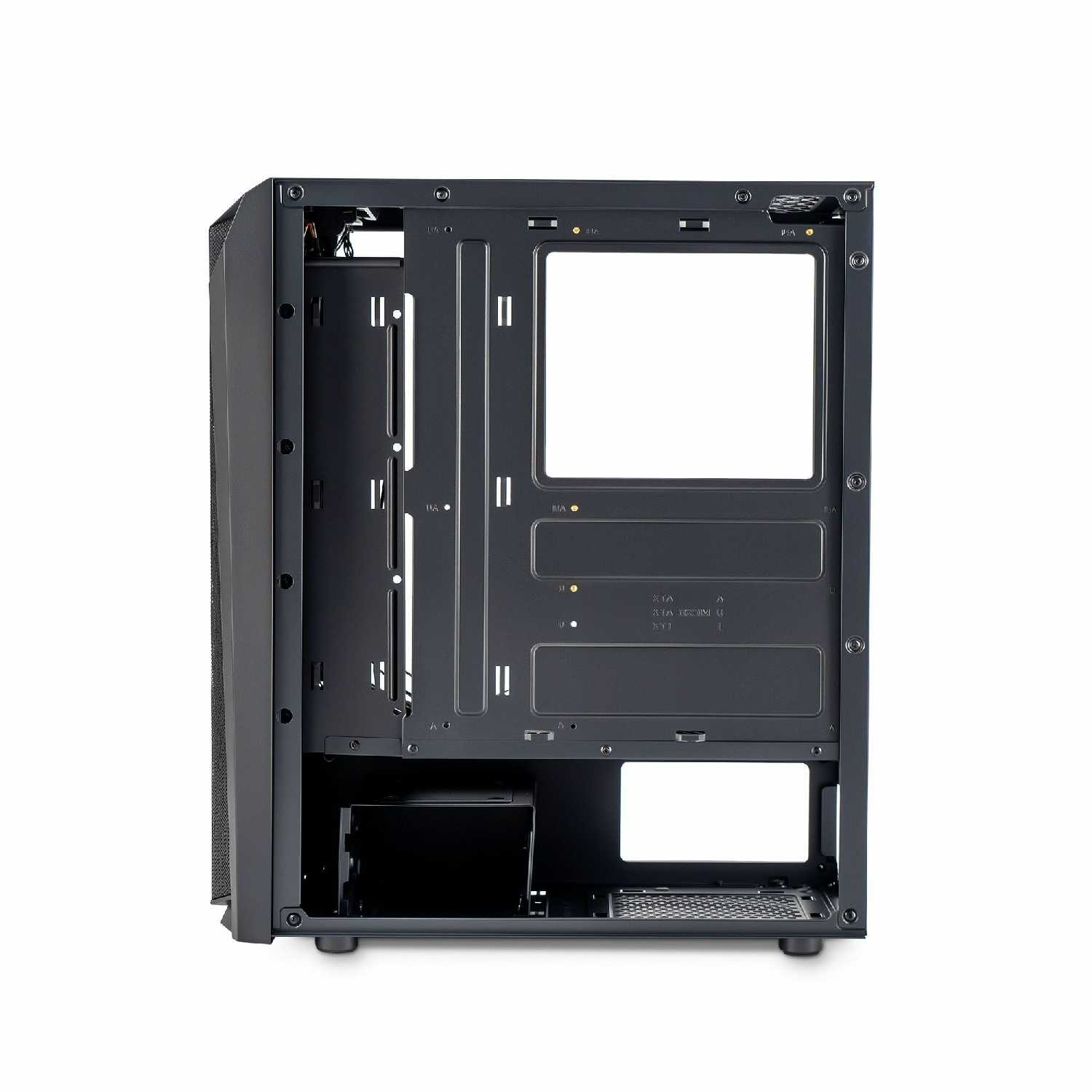 3. Металл (написано, что 0.5 мм) толще, чем ожидал. Нет, конечно, близко не InWin 90-х, но и не фольга. Рядом корпус средней ценовой категории десятилетней давности, т.е. по нынешним временам ~8К, толщина стенок одинаковая с этим. Разумеется, этот меньше весит т.к. корпуса сами стали меньше из-за того, что расстояние, которое занимали корзины для 5.25 и 3.5 убрали, как и сами корзины. Вдобавок лицевая панель mesh (сетка), что тоже снижает вес. На коробке написано 4.4 кг. Для сравнения схожая модель другого популярного производителя весит 4 кг (есть 3.8 и даже 3.6, все ATX), при том, что у всех по 4 RGB вентилятора, а они достаточно тяжелые.