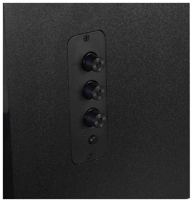 - - Глухой, как из под одеяла, звук. Думается, что качество звука снизилось из-за того, что на боку колонки разместили регуляторы - простейшие потенциометры.