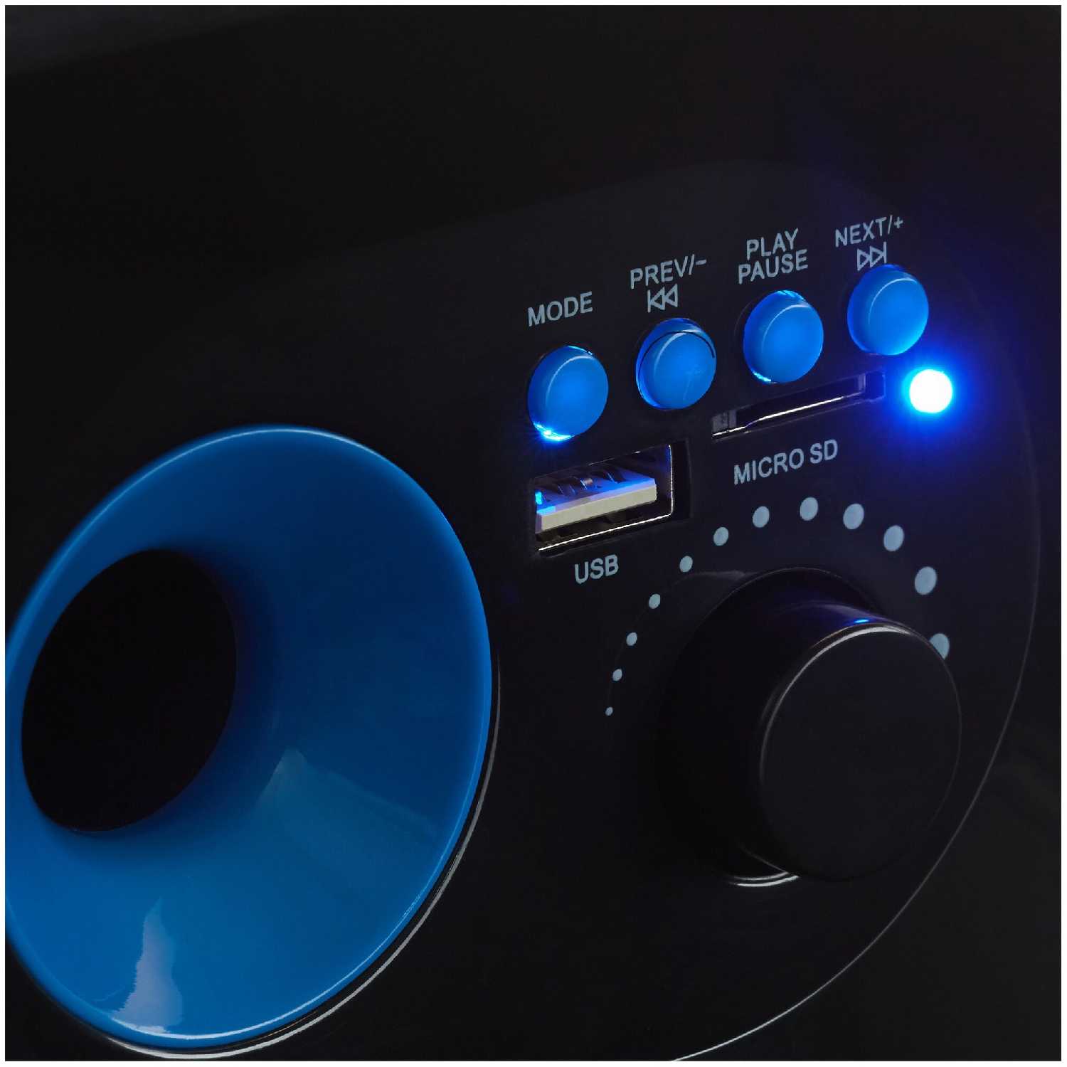 2. Ужасная ярко-синяя подсветка вокруг динамика сабвуфера, плюс постоянно часто мигающий тем же цветом диод над ручкой регулировки громкости справа. Отключить нельзя...