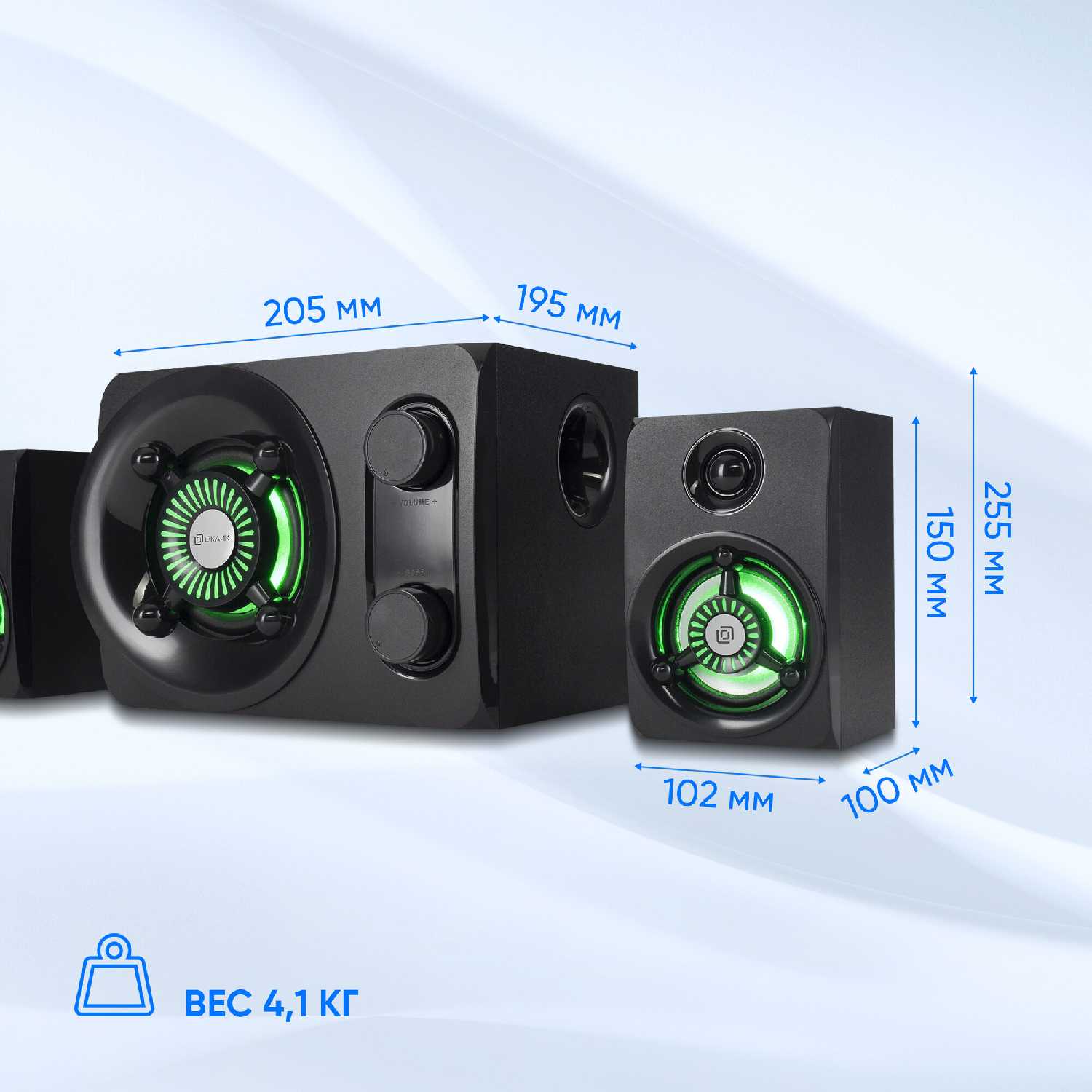 - + Тим звука 2.1, мощность 31 вт, выглядит странно, но я привык и мне даже нравится дизайн колонок.