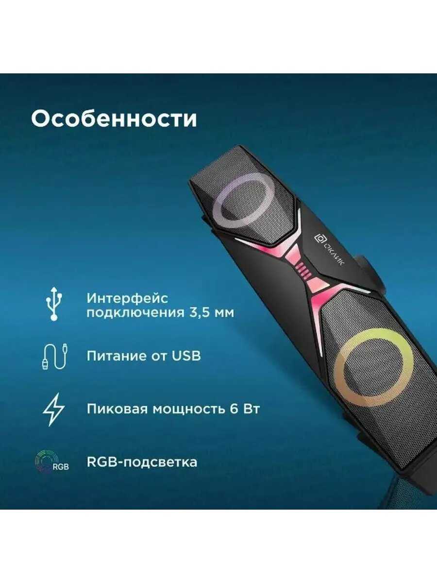 - + Игровой дизайн, легко подключается, мощность 6 вт, 2.0 стандарт.