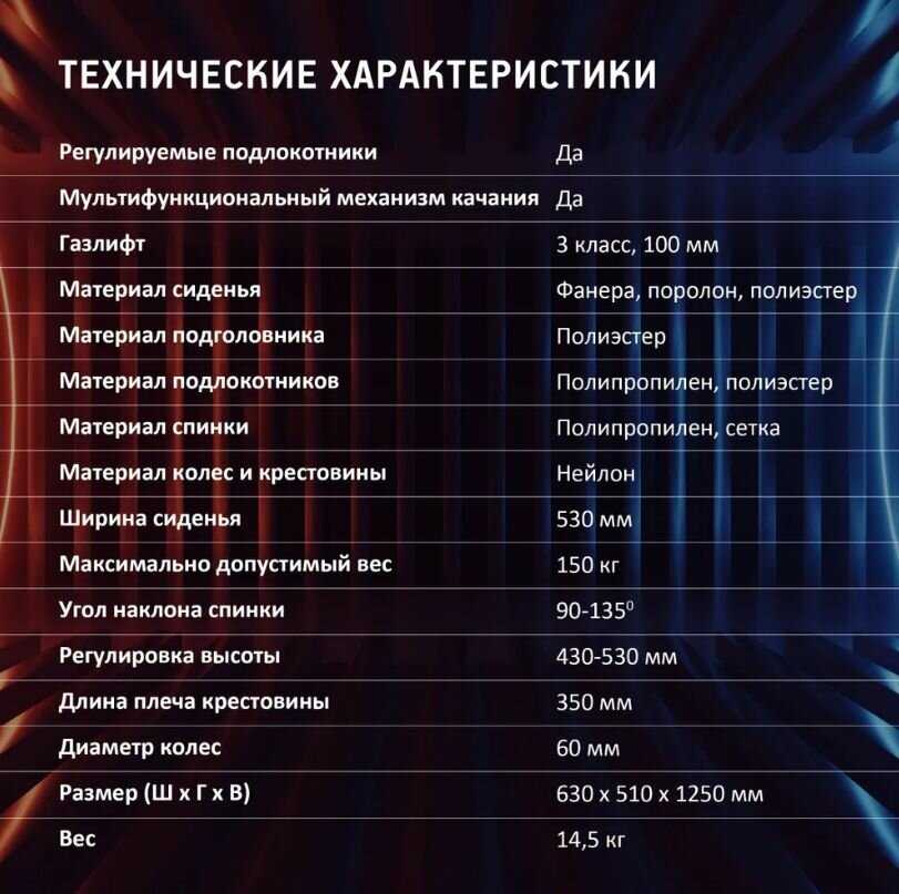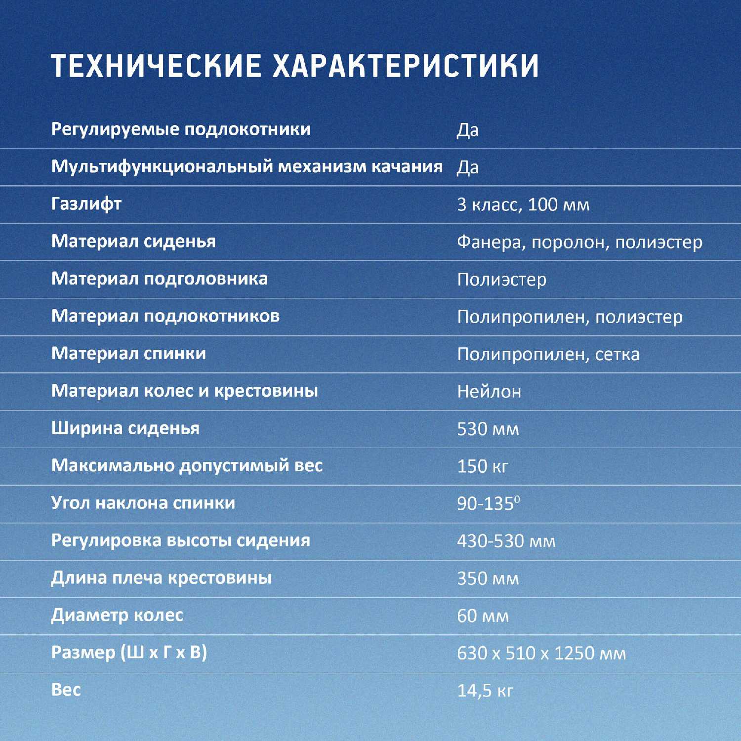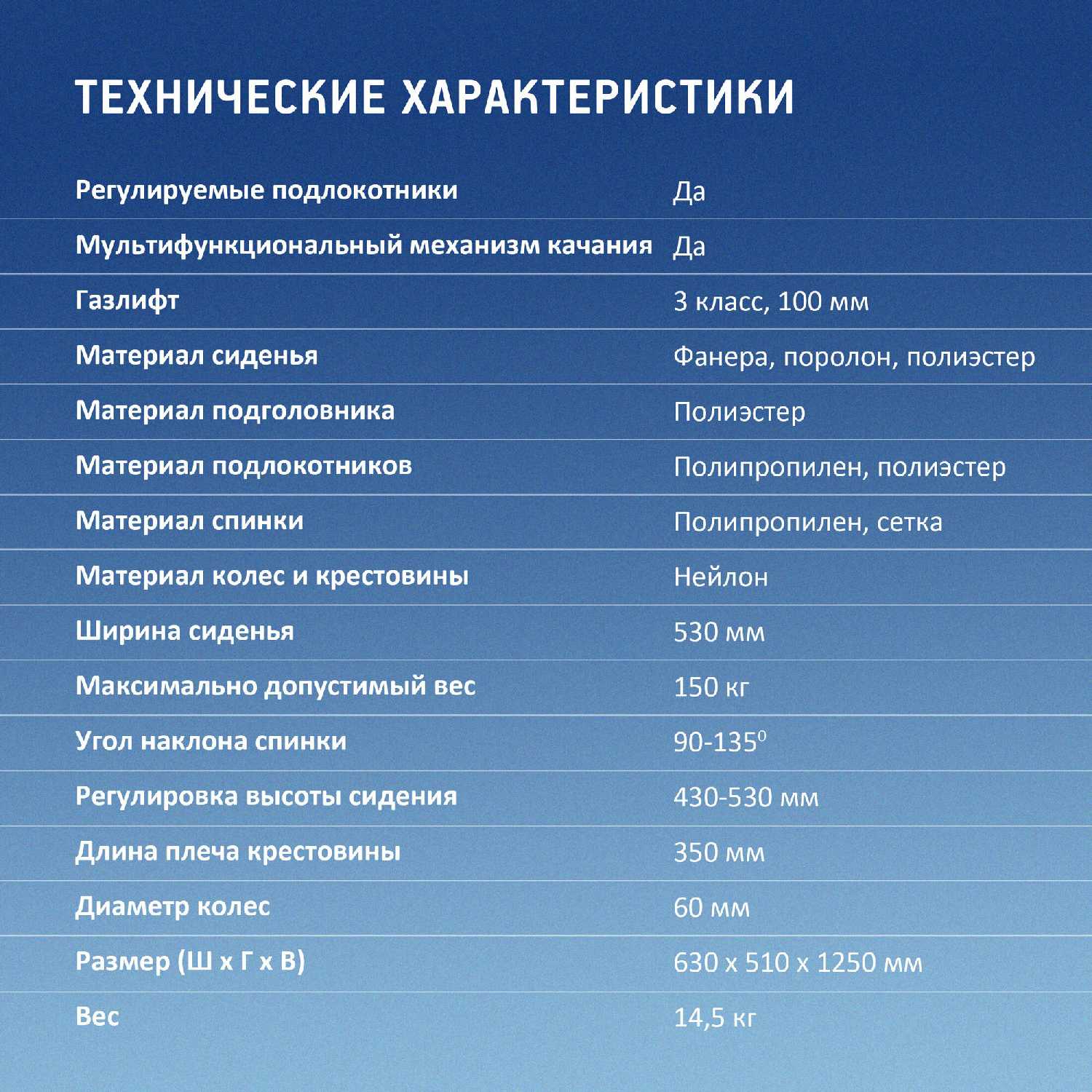 Пятилучевая крестовина с нейлоновыми роликами диаметром 60 мм обеспечивает плавное движение по полу, не оставляя царапин даже на паркете. Газлифт 3-го класса в основном исправно держит нагрузку, но у некоторых пользователей наблюдается незначительное проседание (на 1-2 см) при посадке. Для веса до 100 кг его работы хватает, но при больших нагрузках ресурс может быть ограничен. -