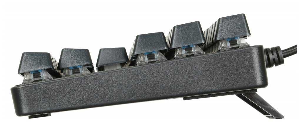 В клавиатурах установлены тактильные кликающие переключатели Outemu Blue. Они обеспечивают выраженную тактильную отдачу и громкий характерный щелчок при каждом нажатии, что особенно ценится пользователями, перешедшими с мембранных клавиатур. При этом переключатели требуют четкого нажатия до точки срабатывания (актуация на 2 мм при общем ходе 4 мм), что снижает вероятность случайных нажатий. Для интенсивных игровых сессий или ночной работы этот звук может быть избыточным. -