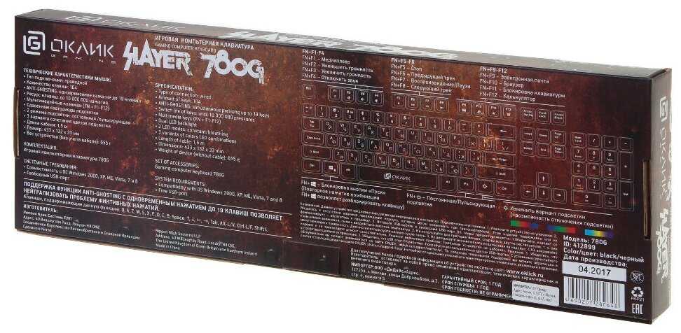 Отзывы о Клавиатура OKLICK SLAYER (780G)