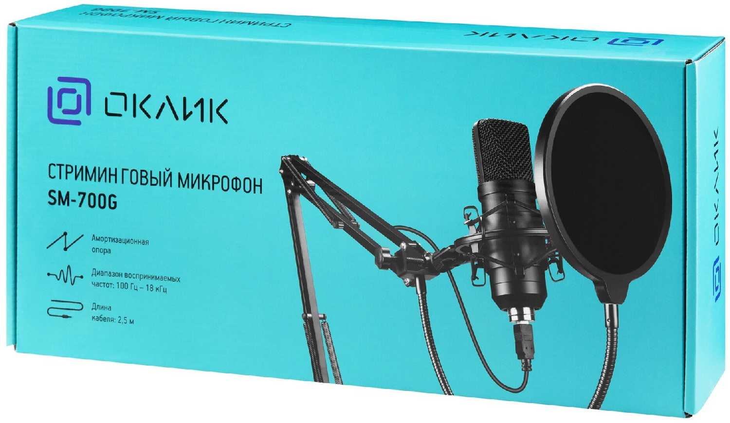 Один из главных плюсов Oklick SM-700G — это его качество звука. Микрофон обеспечивает чёткую передачу голоса с минимальными искажениями. Это делает его отличным выбором для записи подкастов, игровых стримов или видеозаписей.
