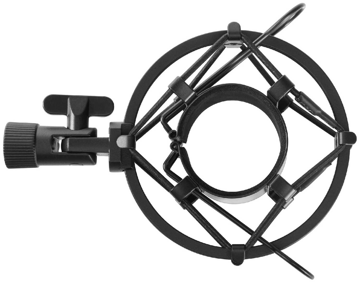 Металлический паук-подвес эффективно гасит вибрации от ударов по столу, но касание руками корпуса или пантографа передает приглушенный гул. Поп-фильтр (в комплекте) дополнительно снижает звуки дыхания, но его крепление может провисать без плотного упора в микрофон. -