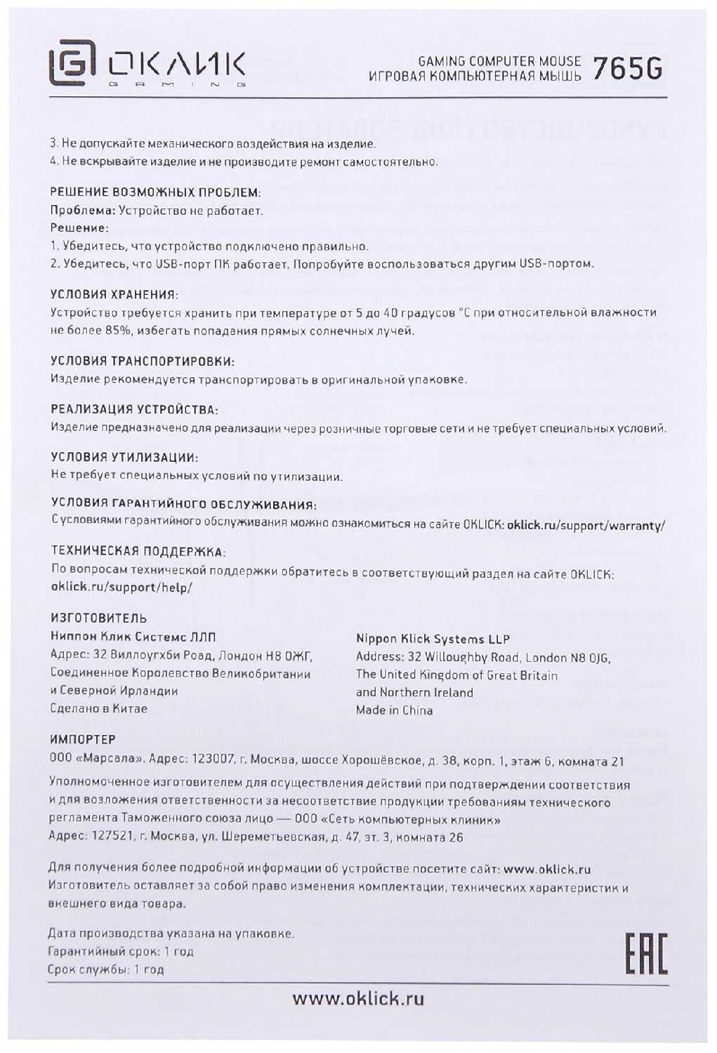 "Игровая мышь Oklick 765G SYMBIONT относится к устройствам типа plug-and-play и не нуждается в установке дополнительного ПО. "