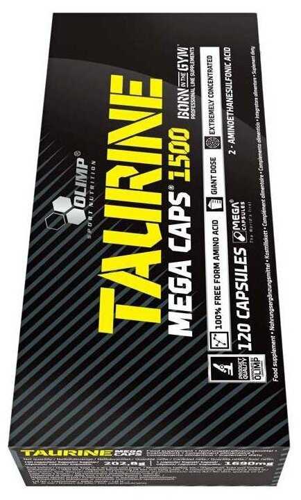 Olimp Taurine Mega Caps это формула, дополняющая рацион питания таурином - аминокислотой, необходимой организму для роста и восстановления после физических нагрузок. Улучшает азотный баланс, подавляет катаболизм, препятствует накоплению жира, увеличивает выносливость, способствует внутримышечному транспорту глюкозы и креатина. Olimp Taurine Mega Caps с помощью технологией MEGA CAPS ® содержит 1500 мг чистого таурина в одной капсуле