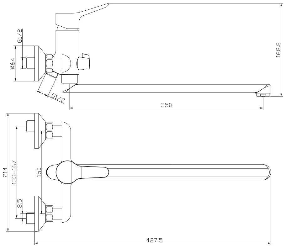 - управление смесителем: рычажное