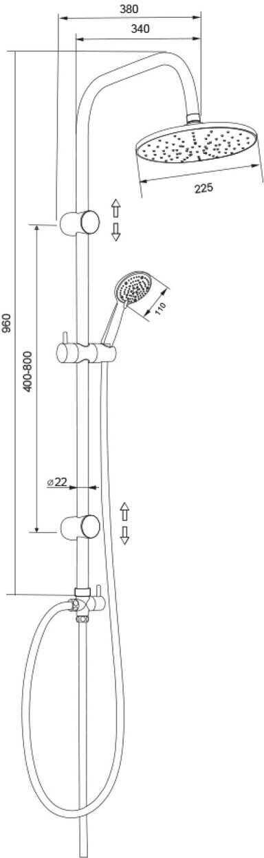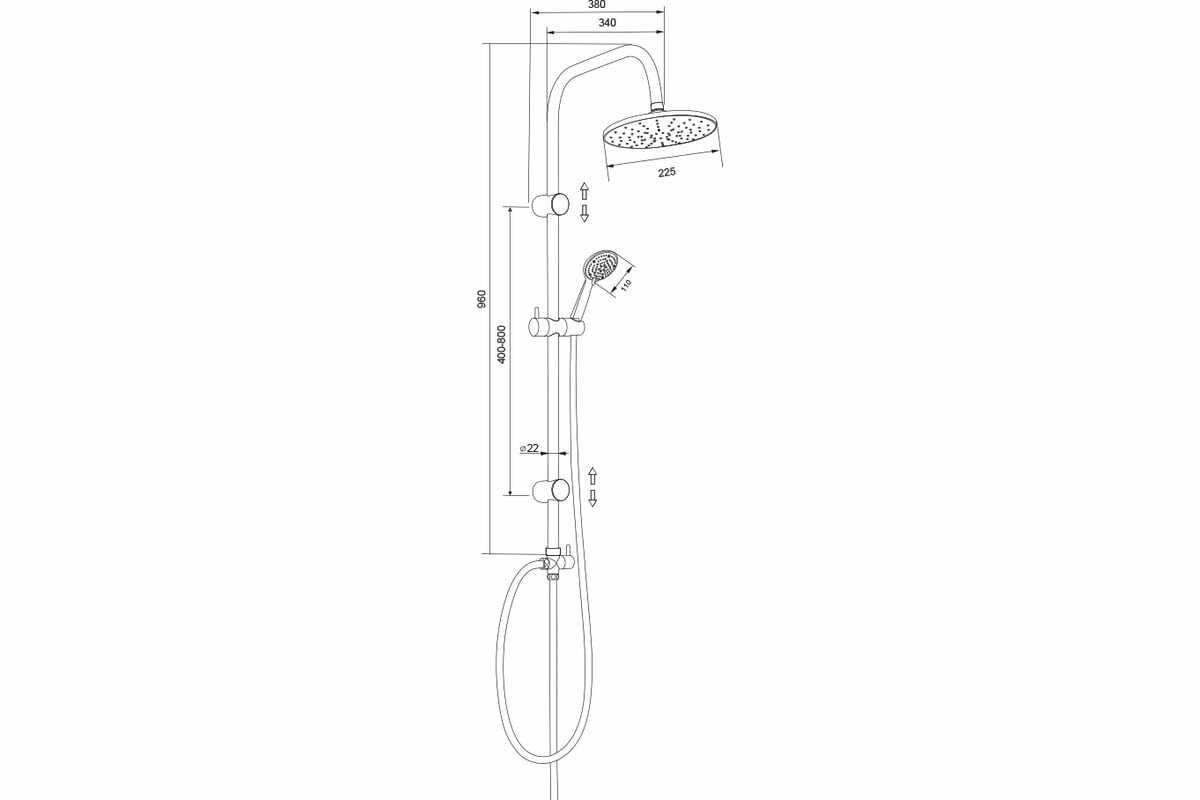 | Дополнительная информация : | высота штанги: 96 см, диаметр штанги: 22 мм, диаметр лейки: 110 мм, диаметр верхнего душа: 22.5 см |