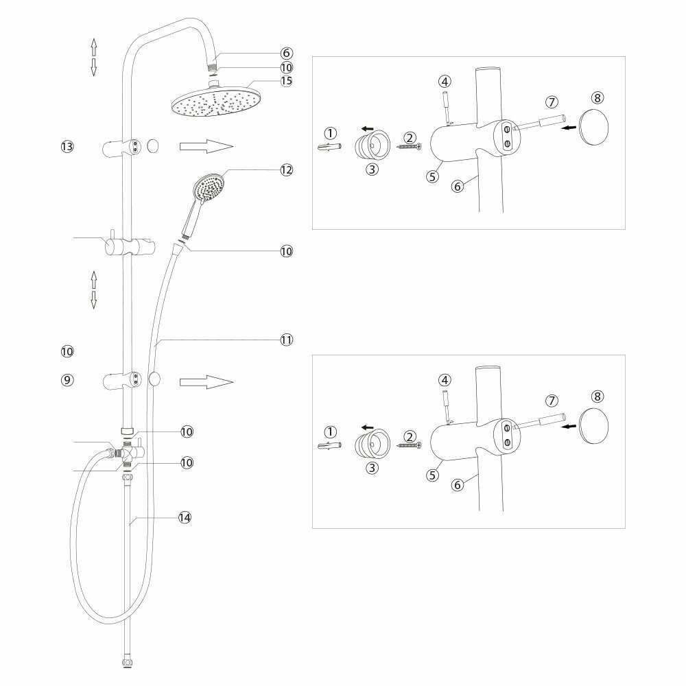| @Комплектация : | душевая лейка - 1 шт., верхний душ - 1 шт., штанга для душа - 1 шт., шланг для душа - 1 шт., комплект крепления |