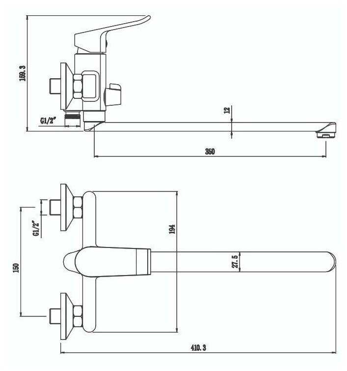- - Реальная длина излива по осям - 360 мм. Производитель несколько "преувеличил". 400 мм - длина коробки)