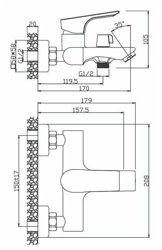 | Комплектация : | лейка, настенный держатель, смеситель, шланг, эксцентрик |