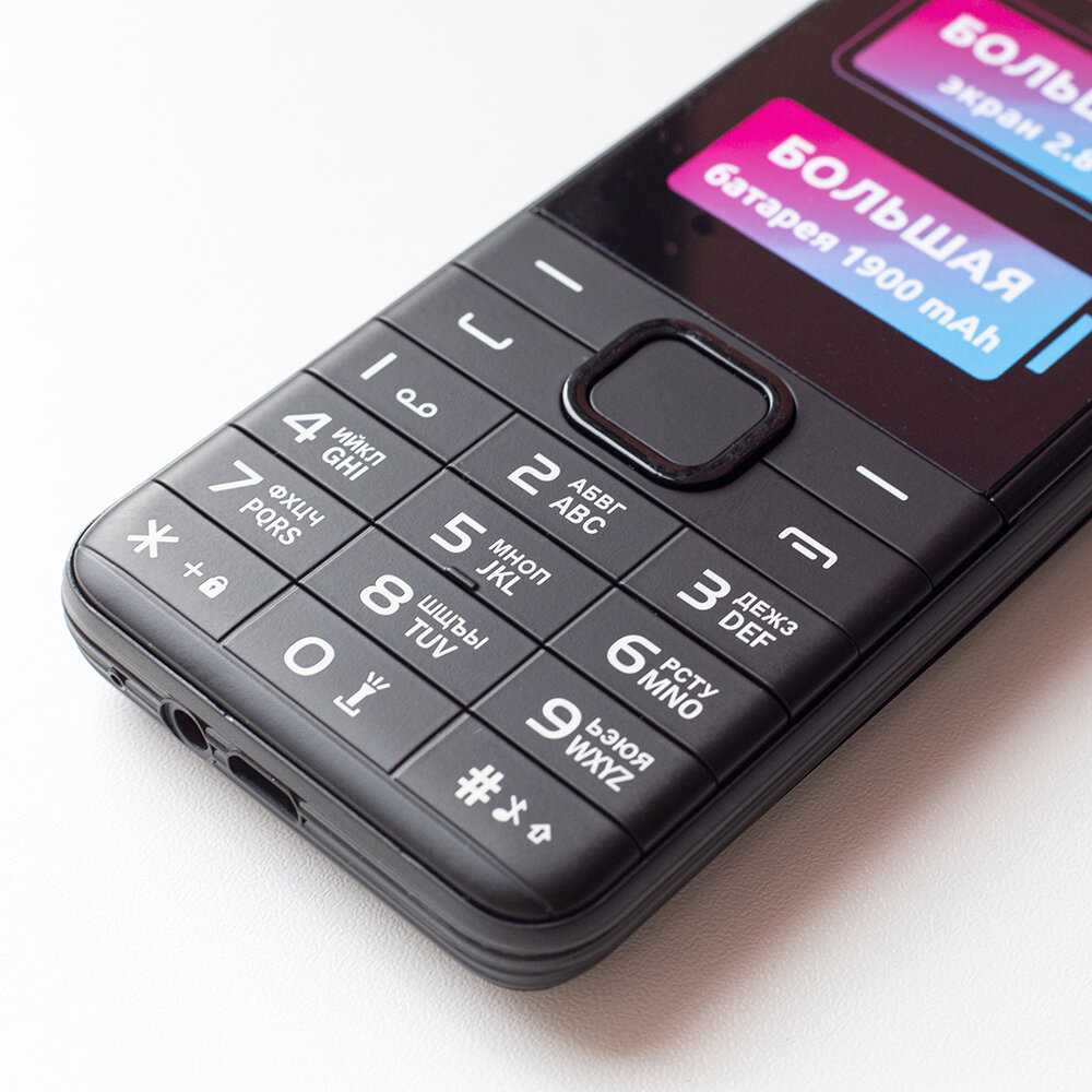 - Экран с увеличенными цифрами и текстом упрощает набор номеров и чтение контактов без напряжения глаз.