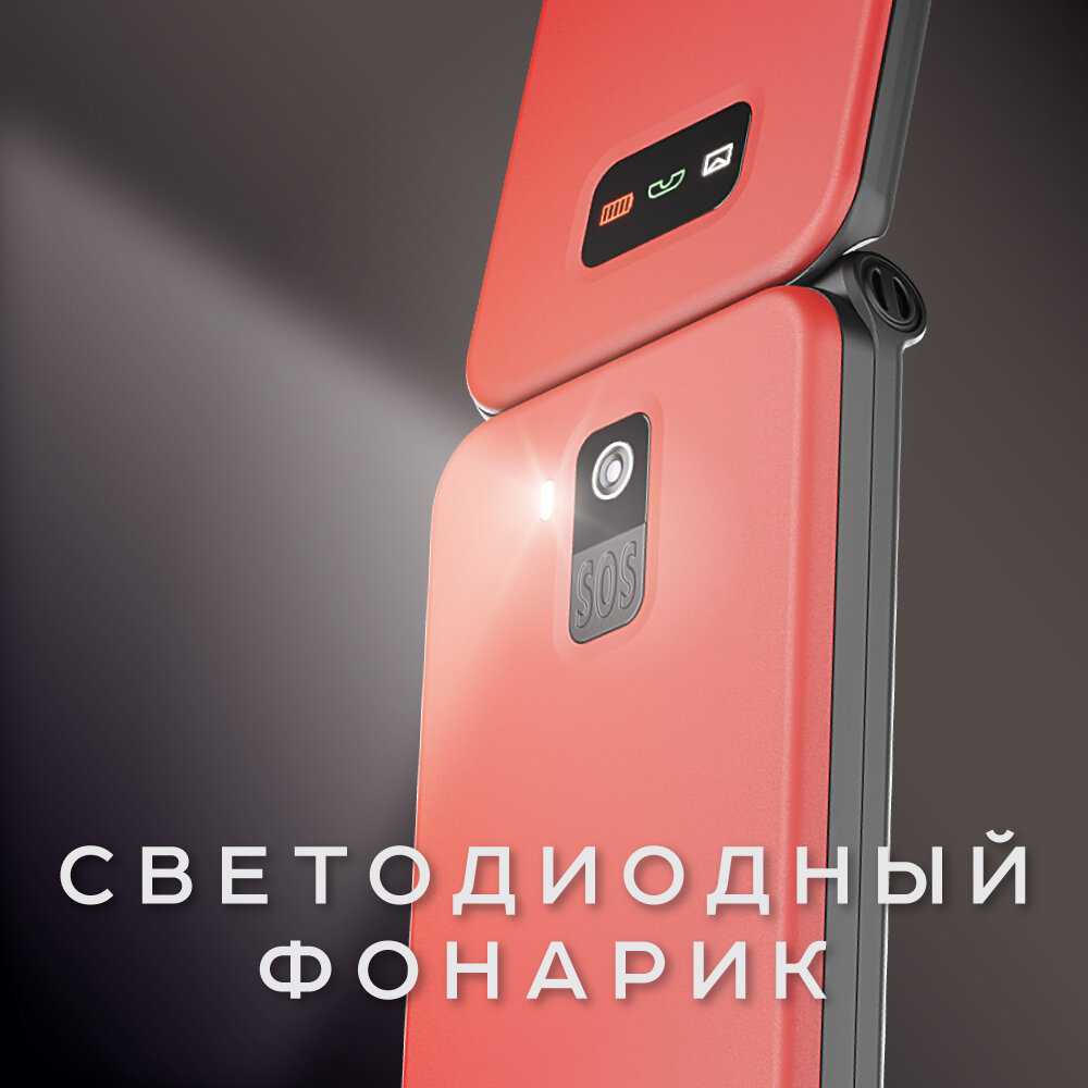 - + Металлический корпус и ярко‑красный цвет делают устройство заметным и прочным; экран на корпусе позволяет следить за сообщениями и пропущенными звонками, не разблокируя раскладушку; крупные кнопки действительно удобны, а размеры телефона подойдут пожилому человеку; звучание в динамике чёткое и громкое. 😊🔴