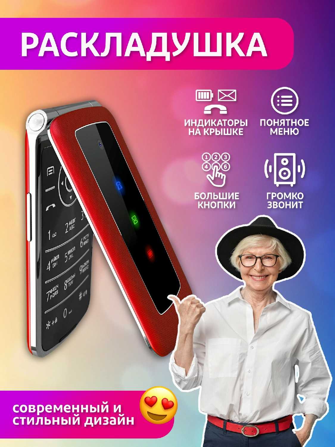 OLMIO Раскладушка телефон с большим экраном д?