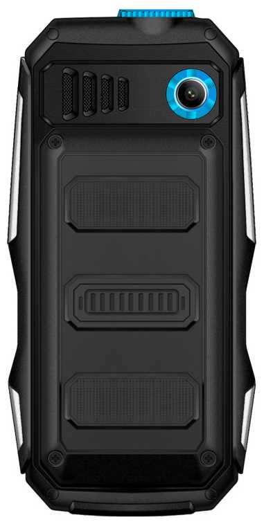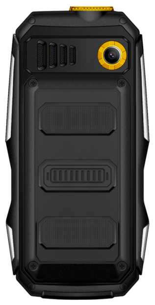 - Телефон имеет брутальный дизайн с резиновыми вставками, что обеспечивает надёжный хват даже крупной рукой.
