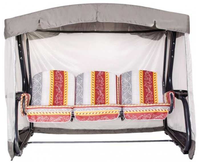 | Дополнительная информация : | размер тканевого тента: 2215х143 см, мягкий элемент: ткань 40% п/э – 60% хлопок плотность 220-230г/м2 наполнитель мягкого элемента поролон (толщиной 80 мм) наполнитель подушек - синтепон (полотно полиэфирное объемное), подушки - 4шт, тент: ткань с водоотталкивающей отделкой 100% п/э плотность 125-130г/м2 с противомоскитной сеткой (полотно гардинное основовязаное 100% п/э плотность 39г/м2) - фиксация сетки на тканевом тенте осуществляется с помощью горизонтальных и вертикальных застежек – «молний», регулировка спинки: осуществляется звеньями цепи на требуемый угол наклона с возможностью фиксации в горизонтальном положении |