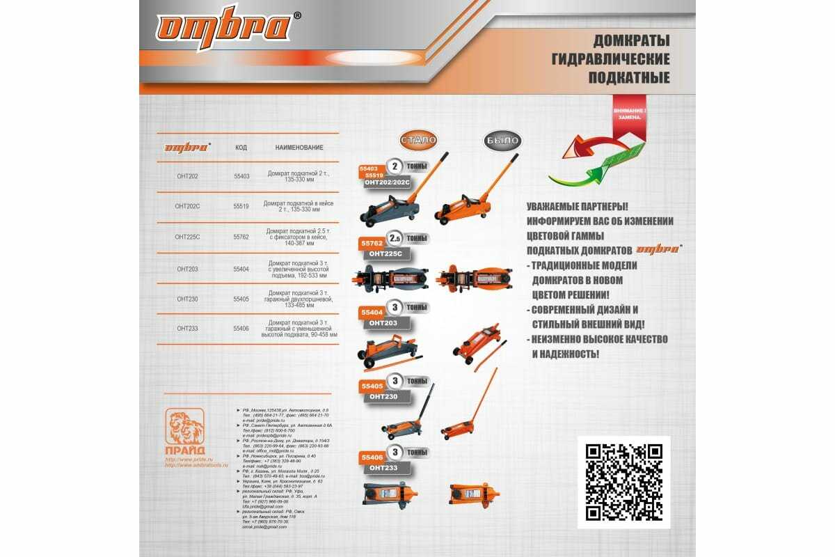 Лучшие цены сегодня на ombra Домкрат подкатной гидравлический (OHT202C)