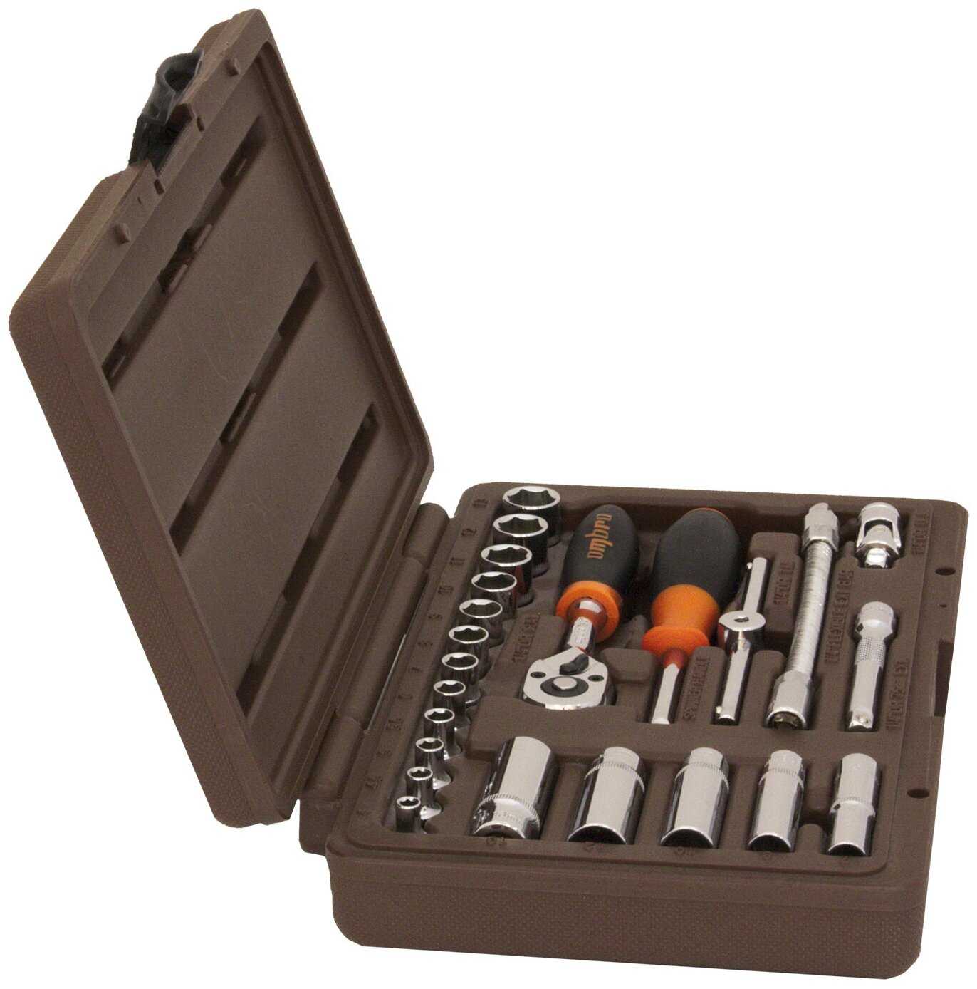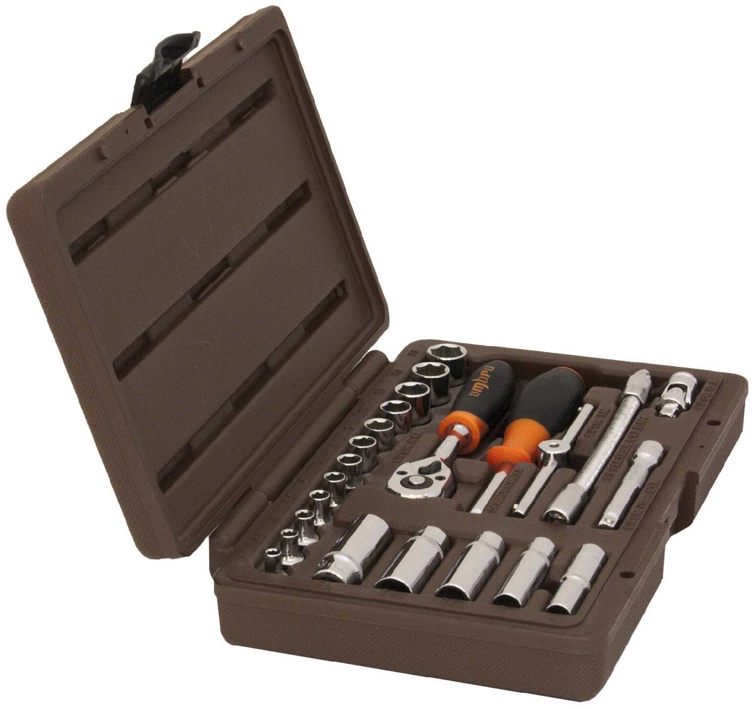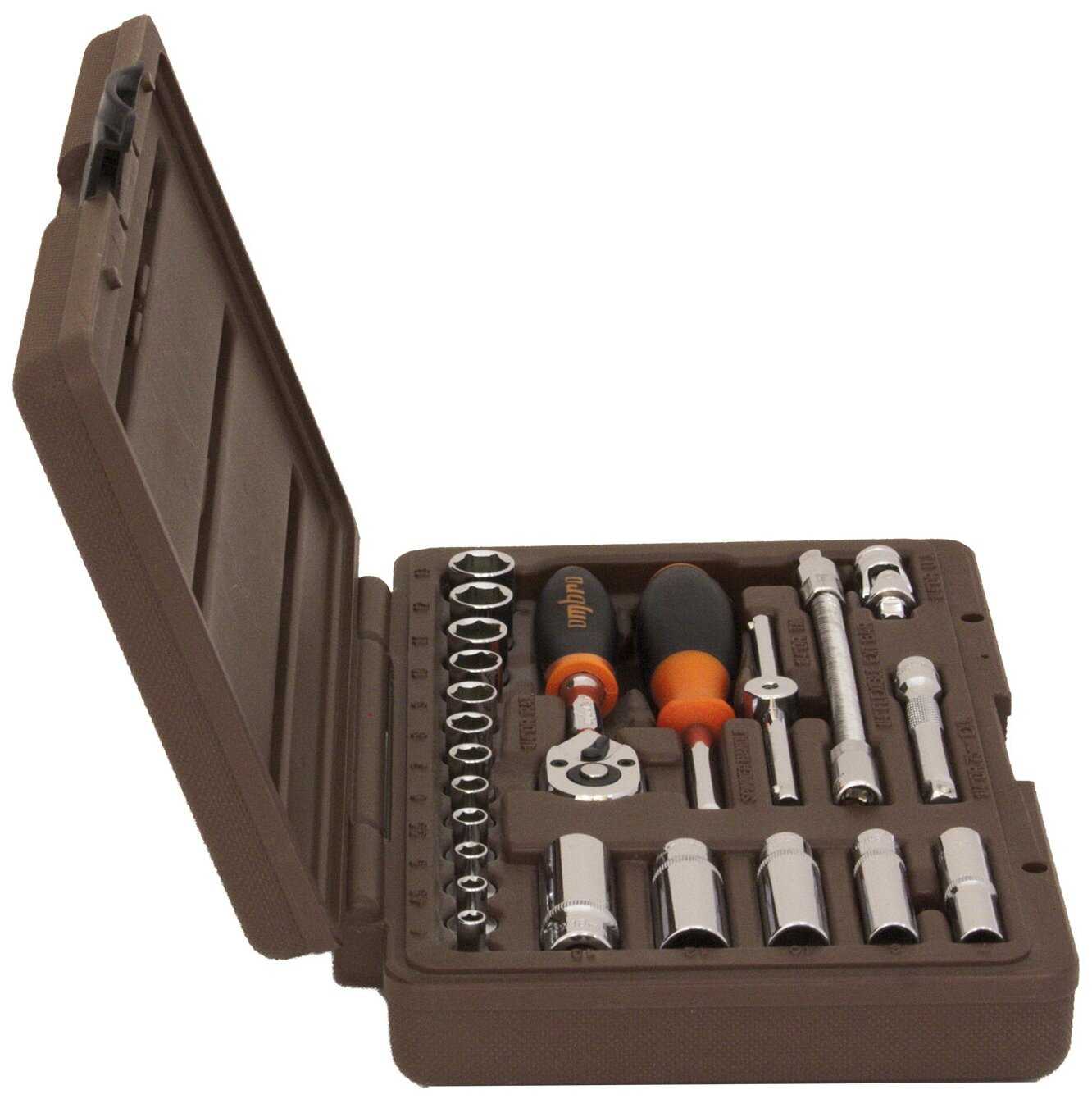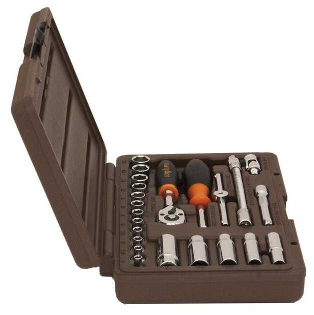 Есть гибкий удлинитель, и отверточная рукоятка к головкам. Пластиковая коробка.применим может только для сборки мебели. И немного для авто 13 мм только самый большой размер. 1 год гарантии.
