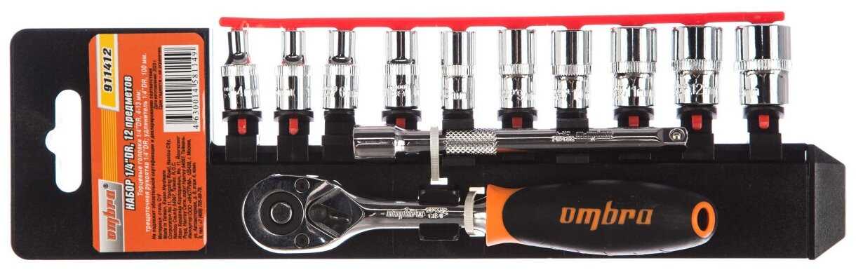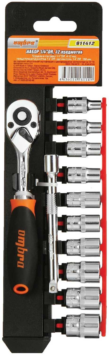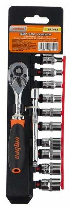 Головки торцевые подробно : | 1/4": 4 5 6 7 8 9 10 11 12 13 мм, удлинитель 1/4": 100 мм, трещотка 1/4": 72 зуба |